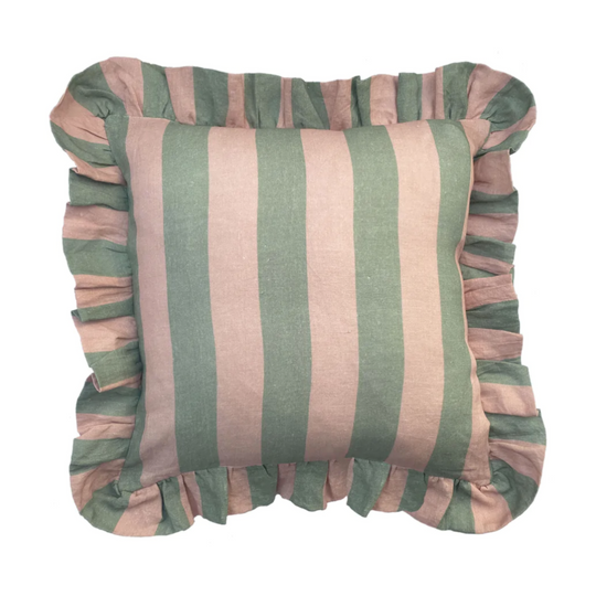 RUFFLED PILLOW COVER, MOSS & BLUSH